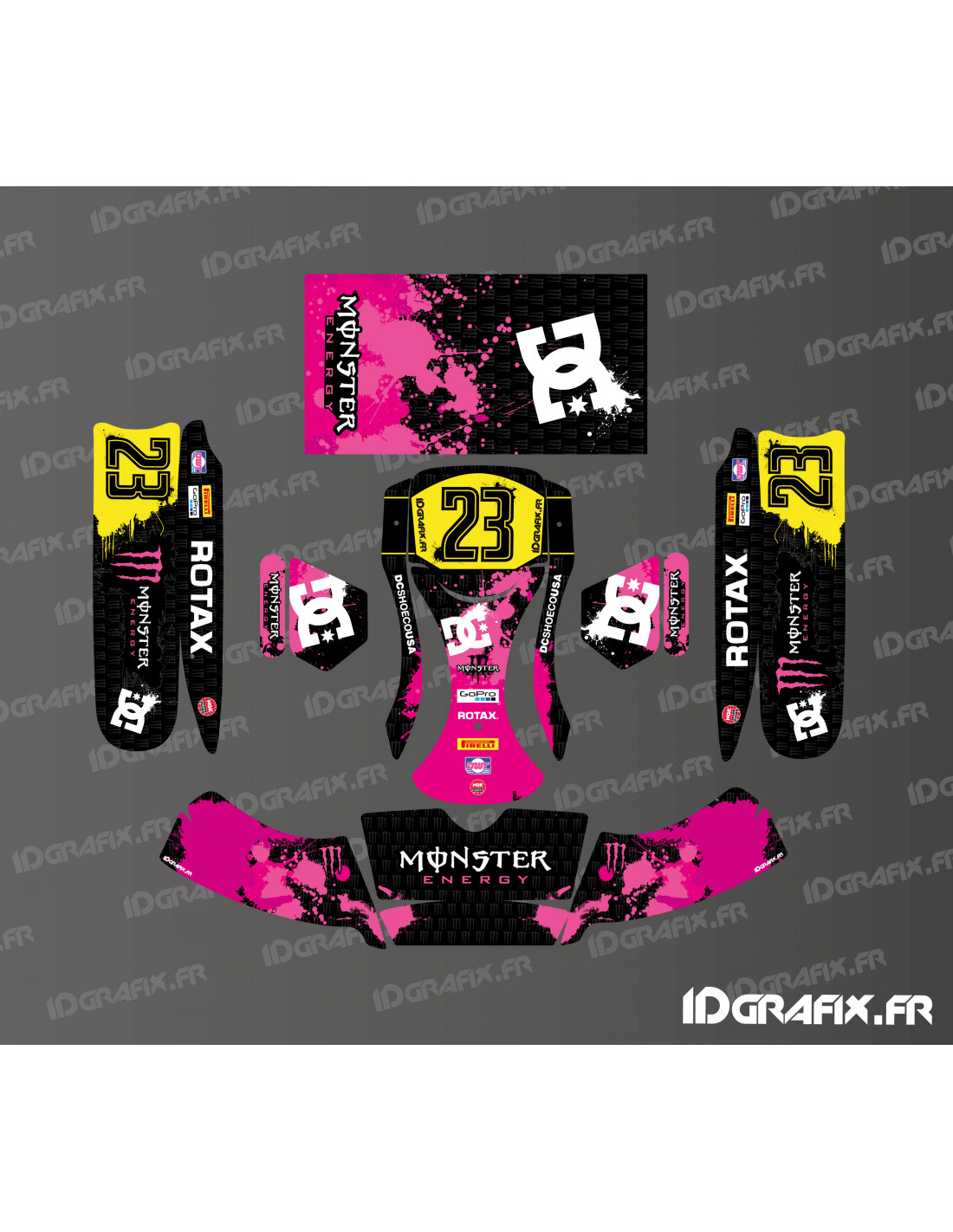 Kit grafico Monster Edition Sodi Racing (nero/rosa) per kart KG BURU EVO - Idgrafix